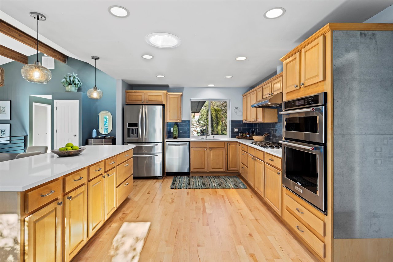 This stylish and spacious gem, nestled in the heart of Normandy Park, features Lot A deeded beach rights with exclusive access to Normandy Park Cove and community club. Enjoy miles of scenic trails, paddle boarding, kayaking, pickleball/tennis, or taking in sunsets by a beachside bonfire. Inside, find vaulted ceilings, new carpet, refinished hardwood floors, and an expansive updated kitchen. The home's open layout flows to a private deck perfect for entertaining. A daylight basement offers large bedrooms and a media room wired for surround sound. The newly renovated primary bath adds a touch of luxury. All this just minutes from Olde Burien's charming shops and restaurants. Minutes to SeaTac Airport, Seattle, and I-5 or 405.